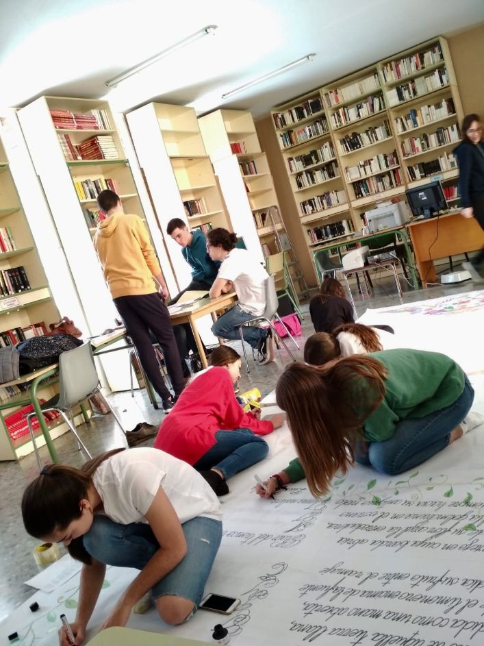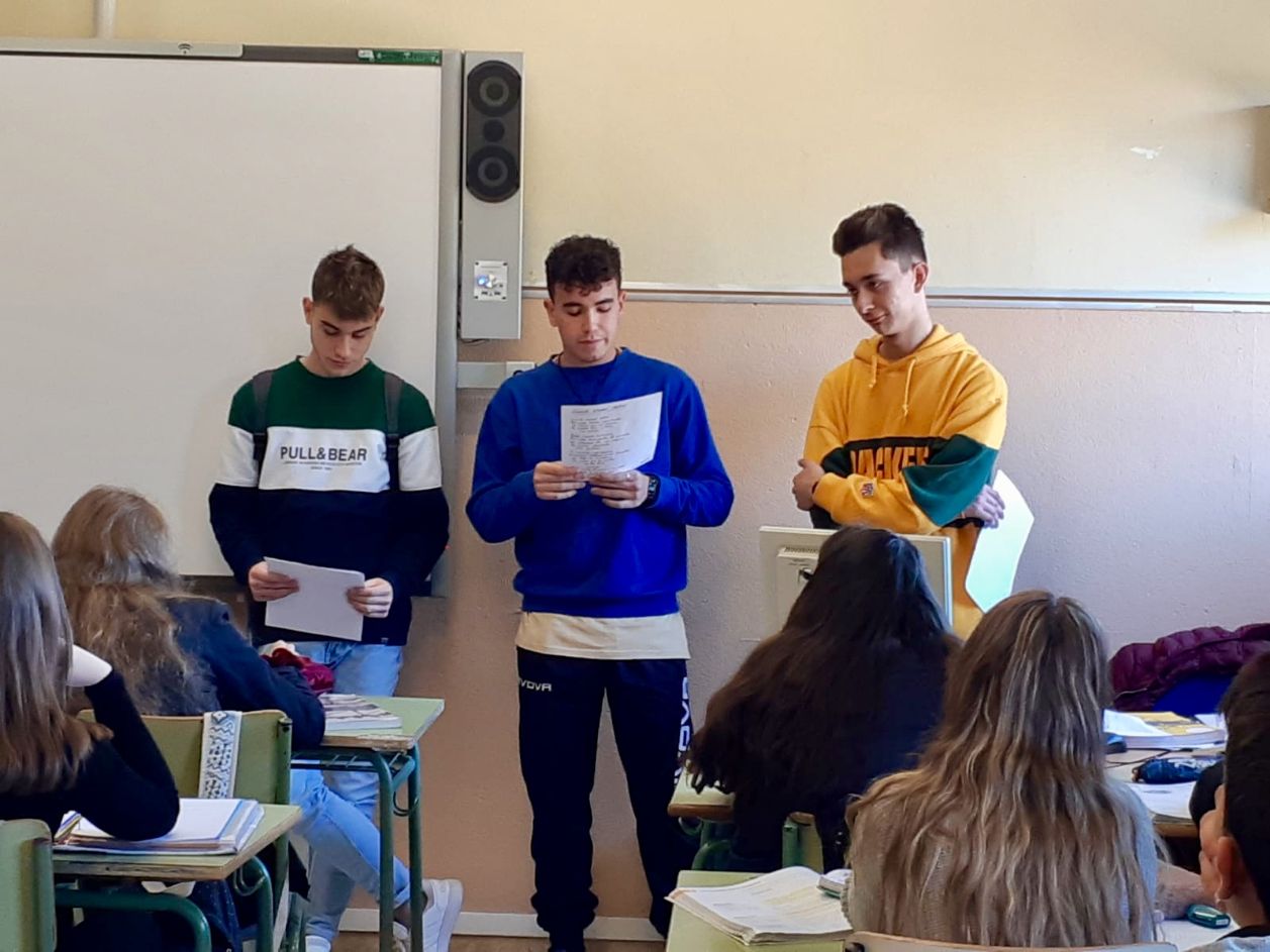 Además, los alumnos de 2º de Bachillerato han recitado diferentes poemas en todas las clases de manera simultánea, propiciando el disfrute de la tradición oral de los recitales, y mostrándoles cómo se encuentra más cerca de sus vidas de lo que piensan.