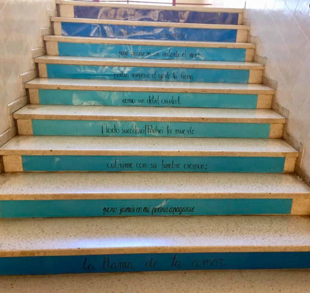 Antonio Machado, Rafael Alberti, Federico García Lorca, Luis Cernuda, entre otros muchos, forman parte de los autores elegidos durante esta semana para llenar nuestras paredes, escaleras y aulas de color y poesía con el fin de visualizarlas y de animar a nuestros alumnos a conocerla y disfrutarla.